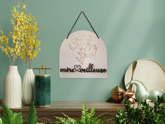 Suspension décoration - Mère veilleuse - cadeau fête des mères - décoration en bois - gravure délicate, tout en douceur