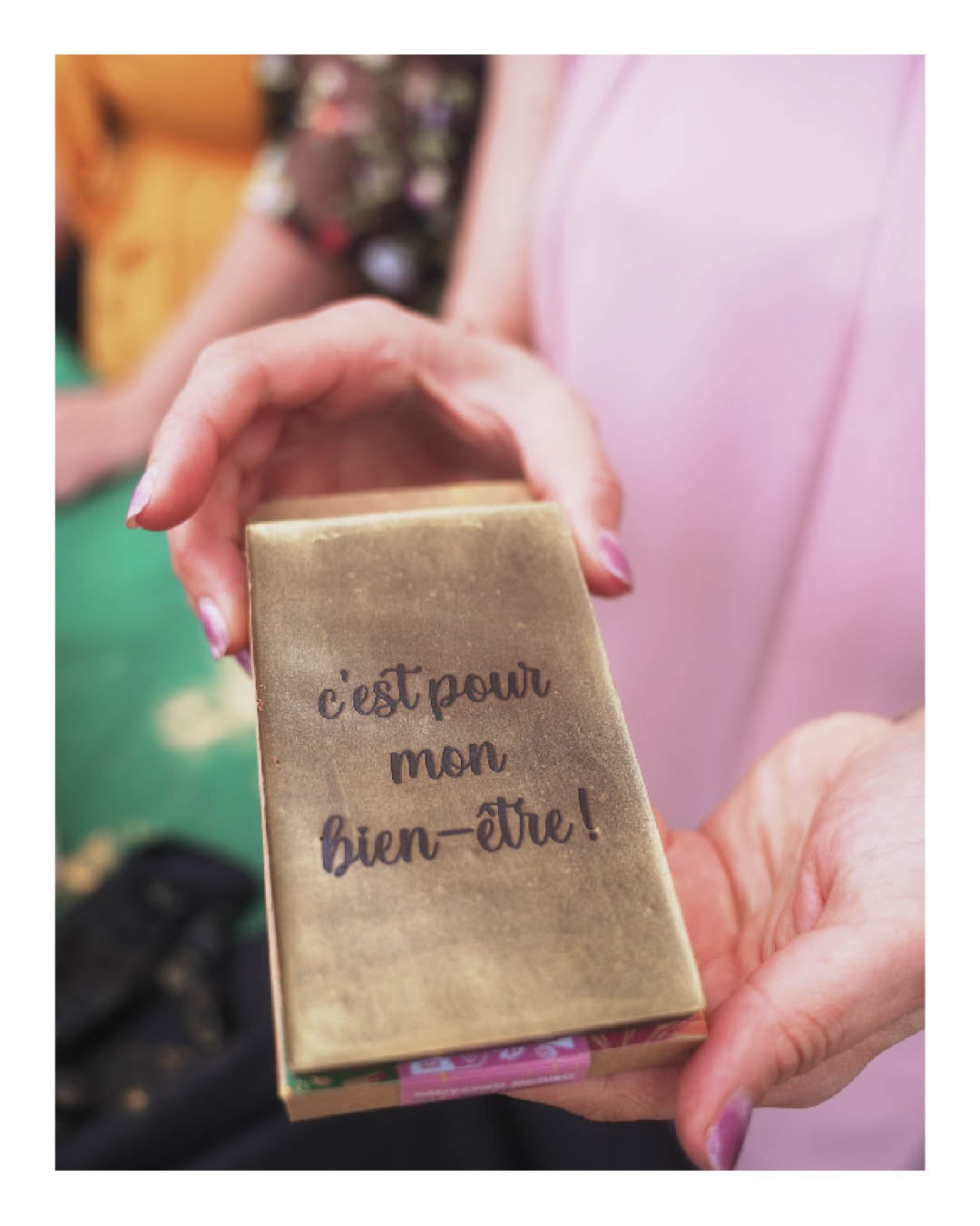 - Tablette de chocolat noir ou lait, gravure personnalisée sur la tablette
