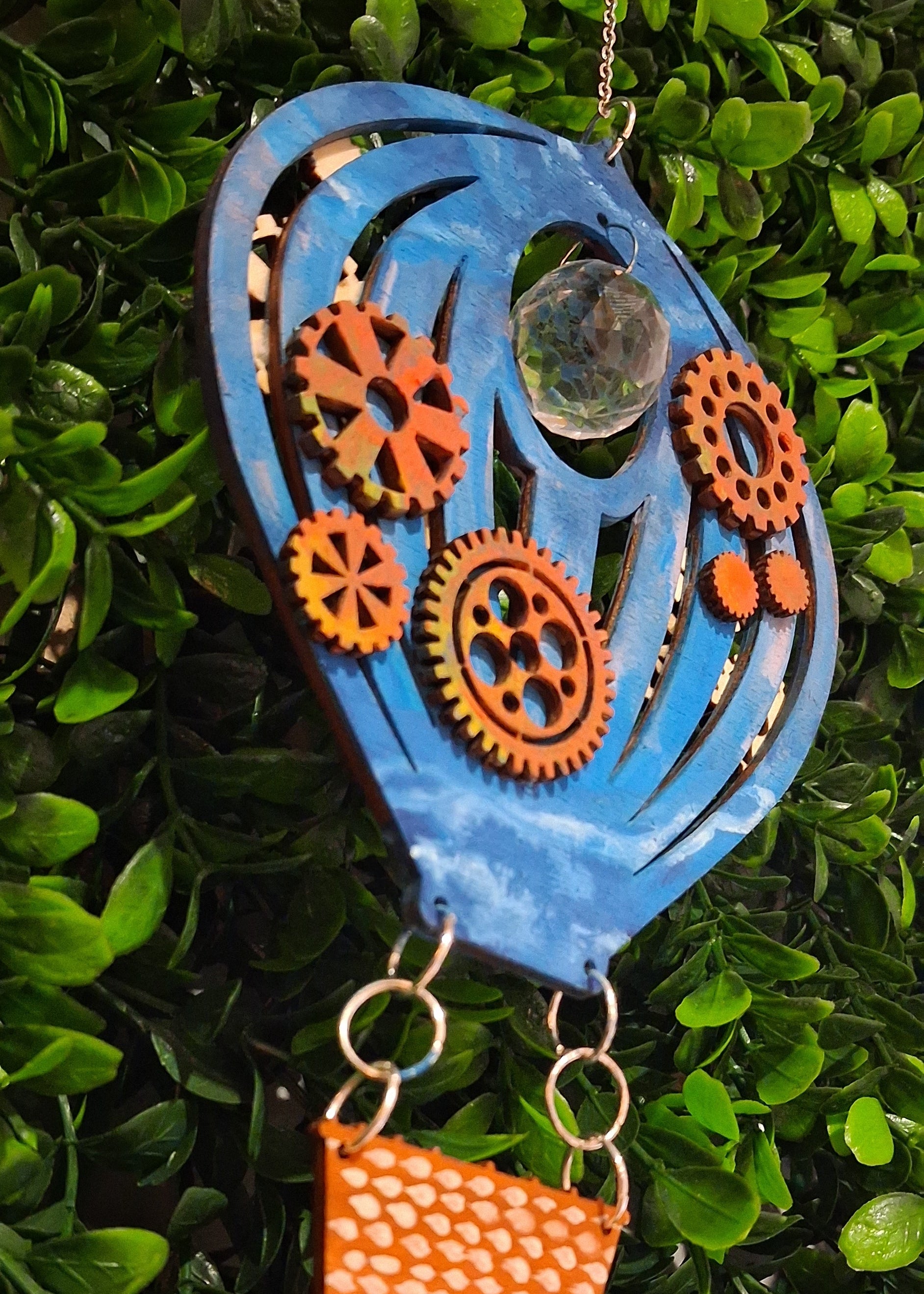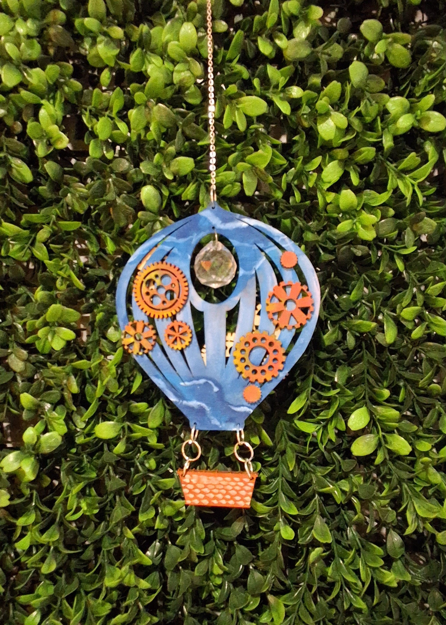 04 : accrocher la chaîne aux anneaux, au crochet pour suspendre et enfin à la création.