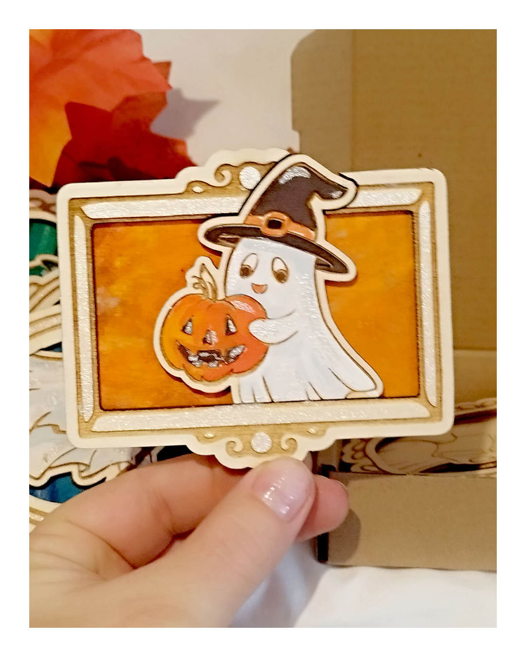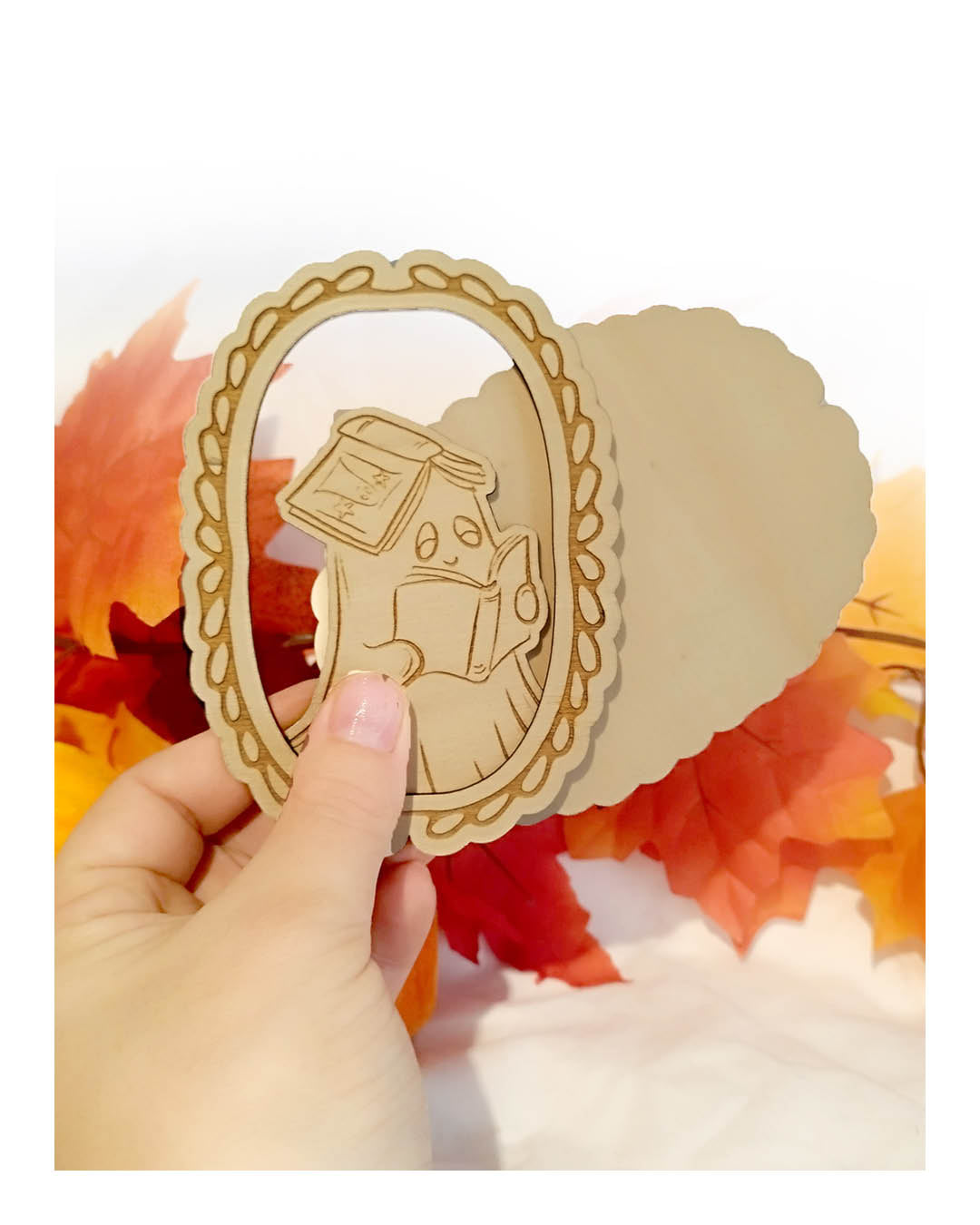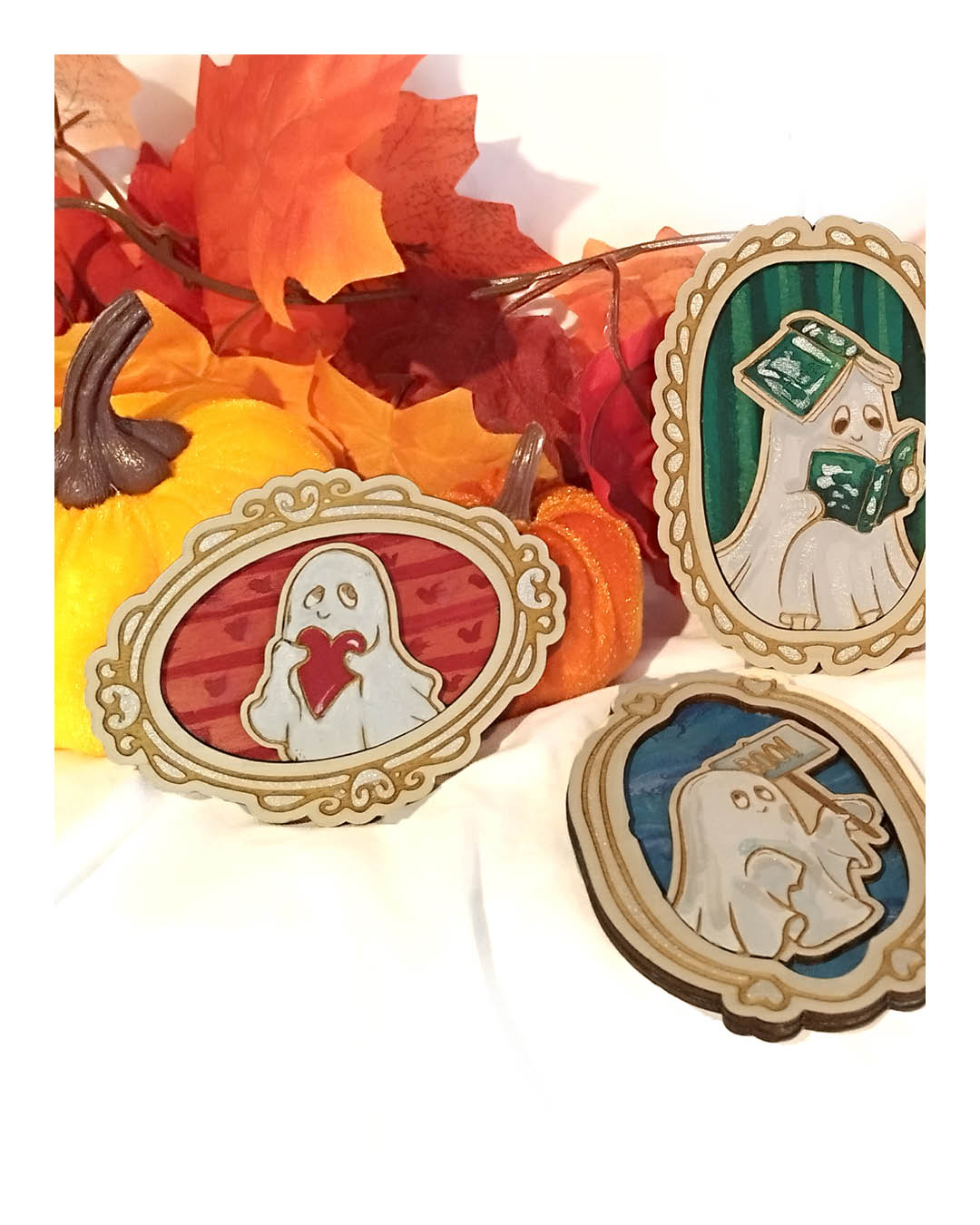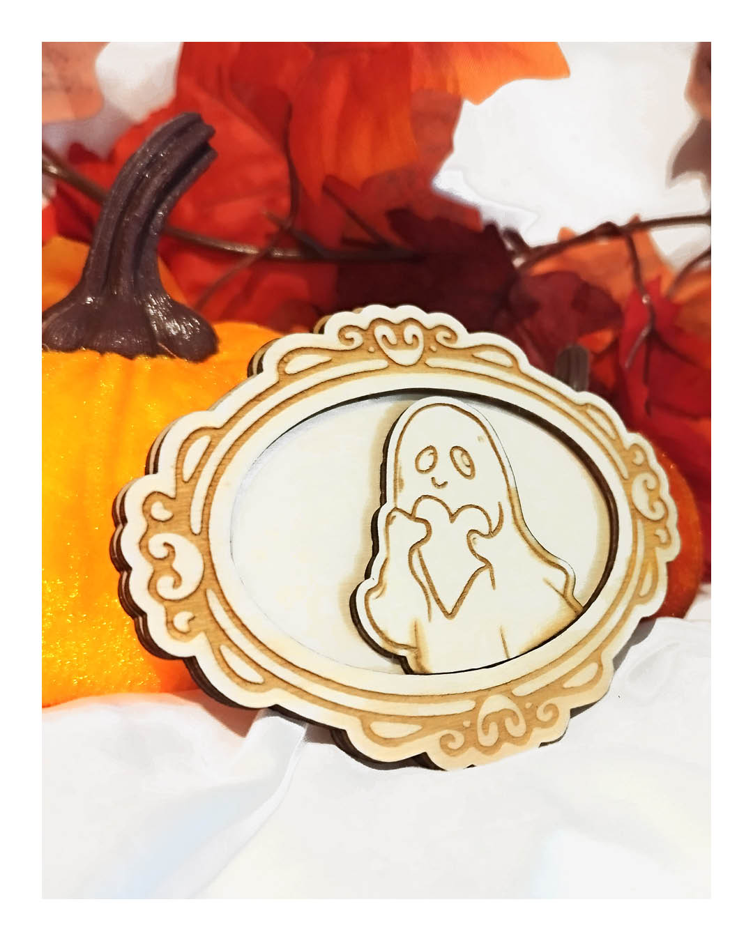 Ce kit complet vous permet de réaliser quatre cadres fantômes en bois, chacun de taille différente (le plus petit mesure 10 cm de large).