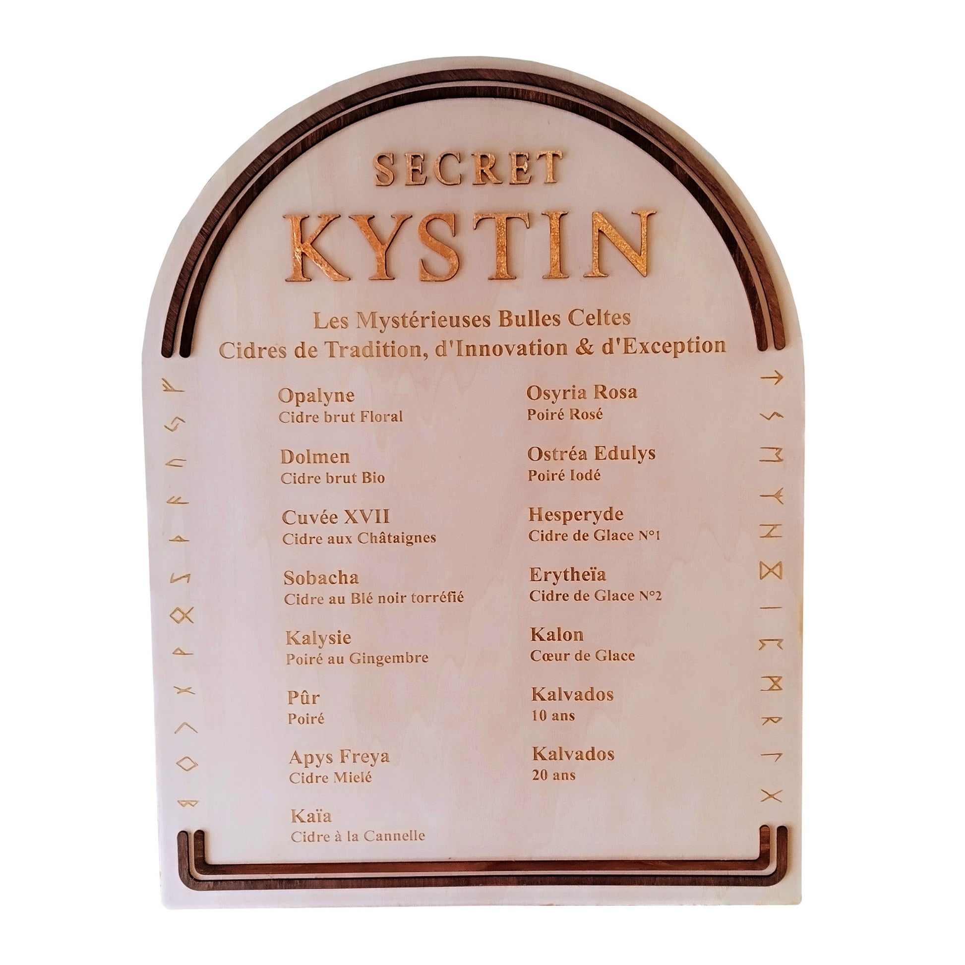 Réalisée en bois avec gravure fine et possibilité de relief, elle peut également être associée à du plexiglas pour créer un contraste élégant entre la chaleur du bois brut et la brillance moderne du plexi.
